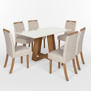 Sala de Jantar Hebe Mesa 160 Cm Canto Reto com Vidro 6 Cadeiras Espresso Móveis Marrom/Off White/Linho - Branco
