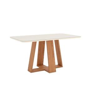 Mesa de Sala Jantar Lins SC92 c/Tampo Madeirado Vidro Curvo 160x90cm Nature/Off White - Henn