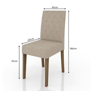O conjunto acompanha 6 cadeiras Jade, desenvolvidas com foco em conforto e resistência. Revestidas em tecido suede aveludado, oferecem maciez ao toque e elegância ao ambiente. O encosto apresenta um bordado sutil, agregando charme ao visual. A estrutura das cadeiras é feita em MDF 25 mm, com assento em espuma de densidade D20, ideal para garantir excelente acomodação. As sapatas plásticas garantem estabilidade e proteção ao piso.
