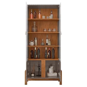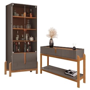 Fabricante: Casa D | Produto: Cristaleira | Tonalidade: Multicolorido Cor: Cinza Pérola/Cedro
