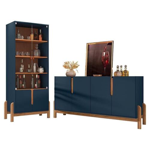 Fabricante: Casa D | Produto: Cristaleira | Tonalidade: Multicolorido Cor: Azul Cobalto/Cedro