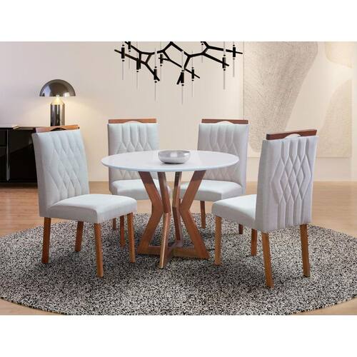 Sala de Jantar Completa com 4 Cadeiras 1,0x1,0m - Ibiza - Art Salas Está linda sala de jantar vai deixar sua casa ainda mais linda e convidativa para receber os amigos e a família. Produzida com materiais de extrema qualidade, te proporcionará uma longa duração! Confira e aproveite! Fazem parte do anúncio: 1 Mesa Ibiza, 4 Cadeiras Apolo Obs: Objetos de decoração não inclusos Particularidades da Sala de Jantar Características da Mesa: -Base em madeira maciça -Tampo em MDF -Vidro sobreposto de 4mm na cor Off White -Tampo redondo Características da Cadeira: -Estrutura em Madeira Maciça Tauari. (laminada) -Frente encosto e assento estofados. -Detalhe em friso na costura do encosto -Espuma com Densidade D-24 -Design moderno, sofisticado e diferenciado. -Madeira Ecologicamente Correta. -Baseado em conceitos sustentáveis. -Madeira altamente resistente. -Suporta até 150 kg distribuídos Dimensões da Mesa: Altura: 80 centímetros Largura: 1 metro Profundidade:1 metro Dimensões da Cadeira: Altura: 1 metro Largura: 44 centímetros Profundidade: 55 centímetros Informações Importantes: - Produtos podem apresentar diferenças de tonalidades entre a foto na tela e o produto real, devido a calibração de cor de tela. - Limpar com flanela ou pano macio. Não utilizar álcool. Não utilizar produtos abrasivos ou corrosivos - Nós prezamos pela qualidade da entrega em primeiro lugar, trabalhamos com transportadoras altamente selecionadas e os melhores materiais de embalagem. - Todos os itens já vão embalados, a mesa vai semi montada e as cadeiras 100% montadas. Não necessita da montagem de um profissional, ficando ao critério do cliente. Não nos responsabilizamos pela montagem. - Certifique-se de que o produto caiba em elevadores e vãos de escadas, não fazemos içamentos ou desmontagens de produtos. Quaisquer despesas deste tipo ficam a cargo do cliente - Garantia de 3 meses contra defeitos de fabricação Marca: Art Salas