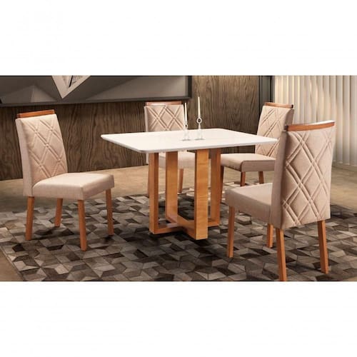 Sala de Jantar Completa com 4 Cadeiras 1,40x0,90 metros - Atlas Zurique - Art Salas