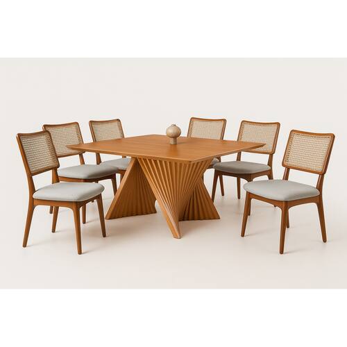 Sala de Jantar Quadrada Madeira Maciça 6 Cadeiras 1,40x1,40m - Vértice - Solare