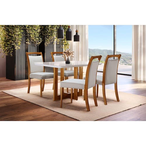 Sala de Jantar Madeira Maciça com 4 Cadeiras 1,20x0,80m - Talia - Espresso Moveis
