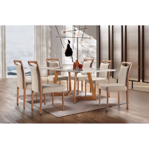 Sala de Jantar Madeira Maciça com 6 Cadeiras 1,80x0,90m - Lívia - Espresso MóveisA sala de jantar completa 6 lugares tampo de vidro é a sala que sua casa estava precisando. Receber os amigos e família e proporcionar um conforto, tem coisa melhor? O conjunto de sala de jantar Lívia vem com essa ideia. Fabricado com madeira ecologicamente correta a base de sua mesa é em madeira maciça Tauari e seu tampo em MDF laqueado, vidro serigrafado de 4mm sobreposto ao tampo com quinas arredondadas. Suas cadeiras também são em madeira Tauari com sua espuma com Densidade D-28 para assento e D-20 para o encosto suportando até até 150 kg distribuídos. É a mesa que você está procurando! Todos os itens já vão embalados e a mesa vai semi montada e as cadeiras 100% montadas. Não necessita da montagem de um profissional, ficando ao critério do cliente. Imperdível este conjunto !Fazem parte deste ambiente:1 mesa Lívia 1,80x0,90m de madeira maciça6 cadeiras Lívia Obs. Objetos de decorações não faz parte deste anúncio.Particularidades da Sala de Jantar CompletaCaracterísticas da Mesa:-Base em madeira maciça Tauari-Canto copo-Tampo em MDF laqueado-Vidro de 4mm Serigrafado sobreposto ao tampo-Produto vai semi montado e embalado-Necessita de encaixe e a colocação dos parafusos-Recomendamos que a montagem da mesa seja feita por um profissionalDimensões da Mesa:Altura: 78 CentímetrosLargura: 1,80 MetrosProfundidade: 90 CentímetrosCaracterísticas da cadeira:-Fabricada em madeira Tauari-Espuma com Densidade D-28 para assento e D-20 para o encosto-Design moderno, sofisticado e diferenciado.-Madeira Ecologicamente Correta.-Baseado em conceitos sustentáveis.-Madeira altamente resistente.-Suporta até 150 kg distribuídos-Cadeiras montadas e embaladasDimensões da cadeira:Altura: 99 CentímetrosLargura: 45 CentímetrosProfundidade: 58 CentímetrosInformações Importantes:-Produtos podem apresentar diferenças de tonalidades entre a foto na tela e o produto real, devido a calibração de cor de tela. -Limpar com flanela ou pano macio. Não utilizar álcool. Não utilizar produtos abrasivos ou corrosivos-Nós prezamos pela qualidade da entrega em primeiro lugar, trabalhamos com transportadoras altamente selecionadas e os melhores materiais de embalagem.-Todos os itens já vão embalados e a mesa vai semi montada e as cadeiras 100% montadas.Não necessita da montagem de um profissional, ficando ao critério do cliente.- Não nos responsabilizamos pela montagem.-Certifique-se de que o produto caiba em elevadores e vãos de escadas, não fazemos içamentos ou desmontagens de produtos. Quaisquer despesas deste tipo ficam a cargo do cliente-Garantia de 3 meses contra defeitos de fabricação.