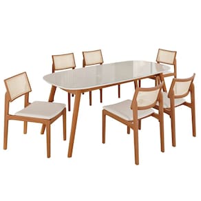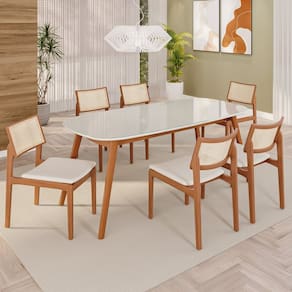 A Sala de Jantar Ceci possui um design moderno e inovador, é o ideal para você que quer aliar resistência e praticidade no dia a dia. Complete a decoração de sua sala com a mesa de jantar com 6 cadeiras. Possui estrutura em madeira maciça e tampo de vidro laqueado com canto arredondado, proporcionando design e segurança. Medida da Mesa (A x L x P): 76X180X80 Peso da Mesa: 33 kg Mesa suporta até: 15 kg Acabamento da Cadeira/Banco: Verniz Natural Acabamento da Mesa: Verniz Ambiente Principal: Sala de Jantar Cadeira/Banco Estofada: Somente Assento Estofado Cadeira/Banco estofada: Somente Assento Estofado Cadeira/Banco suporta até: 120 kg codigo_ean: 7900288190390 Complexidade da Montagem: Média: pode ser montado por mais de uma pessoa e/ou necessite de maior conhecimento para montagem Cor: Naturalissimo / Laca / Off White Cor do Produto: Naturalissimo / Laca / Off White Cor Secundária: Marrom De Canto (Canto Alemão): Não Escala de Brilho: Fosco Espessura do Tampo: 15 mm Formato do Tampo: Retangular Itens Inclusos: 1 Mesa, 6 Cadeiras, Manual de Montagem e Ferragens. Linha ou Coleção: Ceci Manual de Montagem e Instalação: https://product-hub-prd.madeiramadeira.com.br/887193265/documents/66e9b310-2eef-44c7-bca4-65ebfb91f4273032163352817513132700589.pdf Marca: Yescasa Material da Base da Mesa: Madeira Maciça Material da Estrutura da Cadeira: Madeira Maciça Material do Tampo: Vidro/MDF Medida da Cadeira/Banco (A x L x P): 82x59x47 Medida do Tampo (L x C x E): 180X80X1,5 Mesa Extensível: Não Necessita Montagem: Sim Origem do Produto: Nacional Peso da Cadeira/Banco: 9,5 kg Possui Apoio Para os Pés: Não Possui Vidro: Sim Quantidade de Cadeiras: 6 Quantidade de Lugares: 06 Recomendações de Uso, Manutenção e Limpeza: Pano levemente umedecido e pano seco. Não utilizar produtos de limpeza Sistema de Montagem: Parafusos, Cavilhas e chave Allem Tipo de Madeira Maciça da Base da Mesa: Tauari
