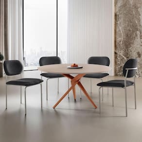 Sala De Jantar Mesa Ballare Com 4 Cadeiras Moderna Mobilia Linho Preto/imbuia/off/prata Transforme sua sala de jantar com o conjunto perfeito entre elegancia e funcionalidade. A Mesa de Jantar Ballare, com seu tampo redondo e acabamento laqueado texturizado, e uma verdadeira peca de design que une charme, originalidade e sofisticacao. Seu formato convida a conexao, criando um ambiente acolhedor e intimista para reunir amigos e familia com estilo. Combinando perfeitamente, as Cadeiras Marchezine trazem conforto excepcional e um visual moderno. Seu assento e encosto estofados garantem bem-estar durante longas refeicoes ou conversas descontraidas, enquanto a estrutura em metal acrescenta um toque contemporaneo ao ambiente.