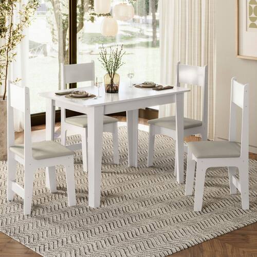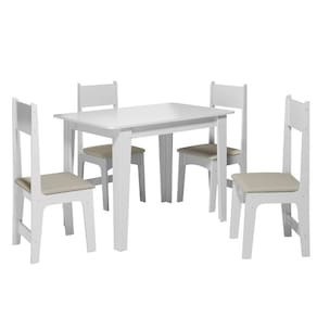 Sala de Jantar Mesa com 4 Cadeiras Assento Delta Branco/Savana