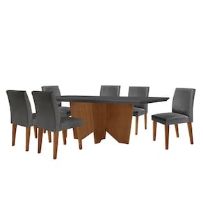 Sala de Jantar Mesa Evora 180 Mdf Canto Reto com 6 Cadeiras Grecia Rufato - Grafite