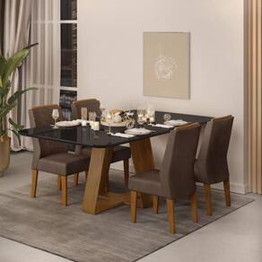 Sala De Jantar Mesa Flora Freijó/preto C/ 4 Cadeiras Lis Freijó/moca - Fdecor Sala de Jantar Mesa Flora c/ Cadeiras Lis - DJ Móveis Mesa Flora 1600x900 - DJ Móveis