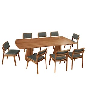 Sala de Jantar Mesa Noronha 220cm Madeira Tampo Barril Laminado com 8 cadeiras Eva - Cinza