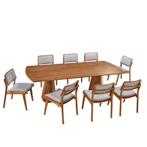 Sala de Jantar Mesa Noronha 220cm Madeira Tampo Barril Laminado com 8 cadeiras Eva - Cinza Claro