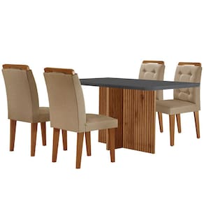 Sala de Jantar Mesa Olímpia 120CM MDF Canto Copo com 4 Cadeiras Carol Moderna - Marrom