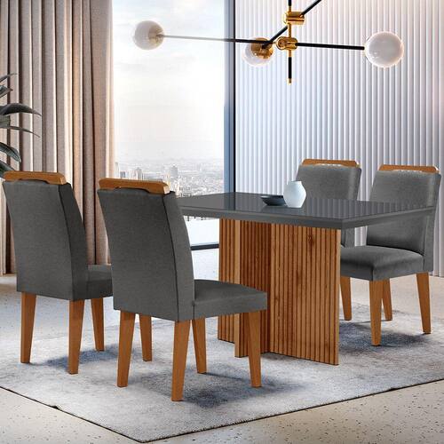 Sala de Jantar Mesa Olímpia 120CM MDF Vidro Canto Reto com 4 Cadeiras Athenas Moderna - Grafite