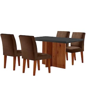 Sala De Jantar Mesa Olimpia Vidro Canto Reto Com 4 Cadeiras Marrom/grafite/imbuia Ripado