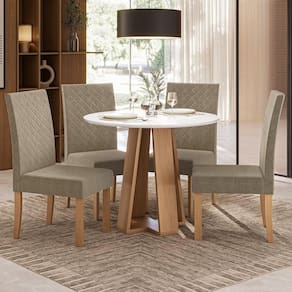 Conjunto Sala de Jantar Mesa Estilo 900 Redonda com Tampo Laqueado Brilho e 4 Cadeiras Elegance Semplice Design Sofisticado e Conforto para Todos os Estilos