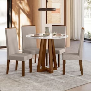 Conjunto Sala de Jantar Livia Piccola 900 Redonda com Tampo de Vidro e 4 Cadeiras Livia Conforto e Elegância para Ambientes Compactos