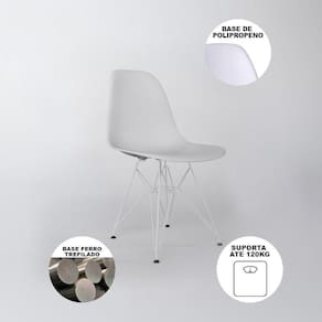 Sala De Jantar Mesa Eames Redonda Vidro 90cm Base Ferro Branco Com 4 Cadeiras BrancasA Mesa Eiffel é a escolha ideal para deixar sua casa muito mais bonita e renovada. Essa mesa tem em sua estrutura materiais de altíssima qualidade, que proporciona muito mais resistência, mesmo com o passar dos anos. Ela tem formato redondo e possui espaço para 4 lugares, o que é ideal para um jantar em família. A mesa é versátil e combina com vários tipos de decoração, o que dá mais praticidade em casa.Tipo: MesaModelo: EiffelCor: Tampo Redondo BrancoDimensões do Produto- Altura: 76cm- Diâmetro:Características- Base: Madeira com ferro entrelaçado preto / branco / cobre- Tampo de Vidro / Madeira (mdp) com espessura de 25mm- Necessita Montagem? Parcialmente (Produto Entregue Montado Parcialmente)Sala de Jantar Mesa Eames Redonda Vidro 90cm Base Ferro Branco com 4 Cadeiras Brancas