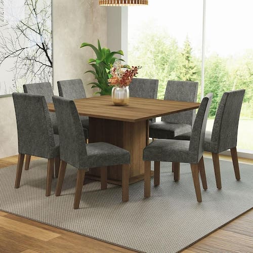 Cor: Marrom | Garantia: 3 meses contra defeitos de fabricação | Dimensões - Altura: 77 cm | Dimensões - Largura: 136 cm | Dimensões - Profundidade: 136 cm | Peso aproximado: 109 kg | Quantidade de Lugares: 8 lugares | Produto: Conjunto Sala de Jantar | Marca: Madesa | RBN: Casa/Móveis/Móveis para Sala de Jantar/Conjuntos para Sala de Jantar | Material: MDP/MDF | Material para Filtro: MDP/MDF | Estado de Origem: RS | Conteúdo da embalagem: 1 Conjunto de Jantar | Instruções/Cuidados: Utilize um pano limpo, levemente umedecido e seque em seguida a superfície. Não usar produtos químicos ou abrasivos para a limpeza. Recomendamos polir seu móvel com lustra-móveis duas a três vezes por ano. | Nome do Simples no Fornecedor: Conjunto Sala de Jantar Mesa Tampo de Madeira 8 Cadeiras Rustic/Silver Doris Madesa | Produto precisa de Montagem?: Sim, sugerimos a contratação do nosso serviço de montagem (para os CEPs em que o serviço está disponível) ou de algum profissional experiente de sua preferência | Descrição do Tamanho: 77 cm x 136 cm x 136 cm | Comprimento Produto Com Embalagem (cm): 142,5 | Largura Produto Com Embalagem (cm): 70 | Altura do Produto com Embalagem (cm): 165,4 | Peso Produto Com Embalagem (Kg): 109,4 | Fabricante: Madesa | Contato do Fabricante: contato@madesa.com | Formato da Mesa: Quadrada Cor: Rustic/Silver