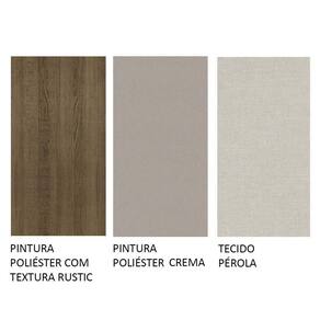 - Destaque para o tampo retangular em madeira com topo em pintura na cor Crema, que recebe um vidro incolor sobreposto.