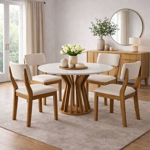 Sala de Jantar redonda 4 Cadeiras 1,10 Kairo -Domus Móveis - Off White