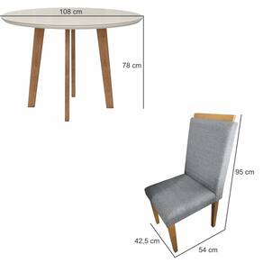 Largura Mesa: 108 cmLargura Cadeira: 42,5 cmAltura Mesa: 78 cmAltura Cadeira: 95 cmProfundidade mesa: 108 cmProfundidade cadeira: 54 cmPeso: 44,50 kilosGarantia: 03 MesesInformações Adicionais: Não possuímos serviço de montagem. Todos os móveis possuem garantia e manual de montagem, Não nos responsabilizamos pelos custos de montagem. É de extrema importância ficar atento às dimensões dos produtos, pois é de sua total responsabilidade caso o produto tenha dimensões superiores ao local de acesso da entrega dificultando ou impossibilitando que a mesma seja concluída. Não nos responsabilizamos, no ato da entrega, por subir escadas, corredores e elevadores ou transporte por guincho em apartamentos. Não nos responsabilizamos por transtornos com a entrega caso o produto necessite de desmontagem, nem pelos custos gerados por esta situação. Imagens meramente ilustrativas a cor, pode variar de acordo com a iluminação do ambiente. Itens de decoração não inclusos.