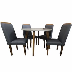 Que tal o Conjunto de Mesa de Jantar Turmalina com Cadeiras Arezzo? Com o Conjunto Turmalina Arezzo, sua sala de jantar será o cenário perfeito para momentos memoráveis. Composto por uma mesa com tampo em MDF de 25 mm espessura, pés em madeira maciça e 4 cadeiras estofadas em espuma, revestidas em tecido linho com pês de madeira maciça, este kit proporciona conforto e praticidade para o seu dia a dia. A mesa, com seu design moderno, tem tampo com aplicação de vidro, adicionando um toque de elegância ao ambiente. Por falar nisso, o visual sofisticado das peças é evidenciado pela valorização do tom amadeirado e a coloração neutra, tornando sua casa ainda mais encantadora e bonita. Com esse conjunto, temos certeza que você e sua família partilharão ótimos momentos