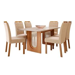 A base da Mesa Valentina é uma obra de arte por si só. Feita de MDF, proporciona estabilidade excepcional, enquanto o detalhe em tela sintética adiciona um elemento de textura e elegância. O tampo de vidro temperado confere um toque de modernidade e leveza. Além de ser visualmente impressionante, o vidro temperado oferece robustez e segurança. O assento e o encosto da cadeira são revestidos com estofamento de alta qualidade, proporcionando uma experiência de conforto excepcional. A inovação da Paola também se estende ao seu sistema de facil montagem. Medida da Mesa (A x L x P): 76cm x 90cm x 180cm Peso da Mesa: 66,72 kg Mesa suporta até: 40.0000 Acabamento da Cadeira/Banco: Verniz Natural Acabamento da Mesa: Pintura UV Acompanha Manual de Instalação: Sim Almofada do assento: Fixa Ambiente Principal: Sala de Jantar Cadeira/Banco estofada: Encosto e Assento Estofados Cadeira/Banco Estofada: Encosto e Assento Estofados Cadeira/Banco suporta até: 100.0000 codigo_ean: 7900288029423 Complexidade da Montagem: Média: pode ser montado por mais de uma pessoa e/ou necessite de maior conhecimento para montagem Cor: Cinamomo/Offwhite/Nude Cor do Produto: Cinamomo/Offwhite/Nude Cor do Tampo: Bege Cor Secundária: Bege De Canto (Canto Alemão): Não Enchimento do Assento: Espuma D-20 Enchimento do Encosto: Espuma D-18 Escala de Brilho: Semi-Brilho Espessura do Tampo: 29 mm Formato do Tampo: Retangular Itens Inclusos: 1 Mesa, 4 Cadeiras, Kit de ferragens e Manual de montagem Manual de Montagem e Instalação: https://product-hub-prd.madeiramadeira.com.br/971008/documents/1c8ea1f0-9017-4bb5-91c0-9ea11dfa8c542575503503517334959311487.pdf Marca: Cimol Material da Base da Mesa: MDF Material da Estrutura da Cadeira: Madeira Material do Tampo: MDF/Vidro Medida da Cadeira/Banco (A x L x P): 99cm x 46cm x 57cm Medida do Tampo (L x C x E): 90 x 180 x 2,9 Mesa Extensível: Não Necessita Montagem: Sim Origem do Produto: Nacional Peso da Cadeira/Banco: 9 kg Possui Apoio Para os Pés: Não Possui Suporte Giratório: Não Possui Vidro: Sim Quantidade de Cadeiras: 6 Quantidade de Lugares: 06 Recomendações de Uso, Manutenção e Limpeza: Para manter seu móvel novo por muito mais tempo, evite locais úmidos, mantenha-o distante de líquidos. Para limpá-lo com segurança utilize uma flanela seca sem produtos abrasivos Revestimento da Cadeira/Banco: Suede Sistema de Montagem: Parfuso, porcas e cavilhas. Tipo de Encosto: Estofado