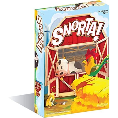 Prepare-se para rir quando seus amigos e familiares de repente começarem a soar como se tivessem nascido em um celeiro! Em Snorta!, cada jogador recebe uma carta de celeiro com seu animal secreto e uma mão de cartas de animais. Quando uma carta colocada corresponde a uma das cartas já na mesa, esses dois jogadores correm para dizer o som animal do outro jogador, não o som do animal na carta. Se você disser o som do outro jogador primeiro, você lhe dará todas as cartas que você virou na mesa à sua frente. A primeira pessoa a tirar todas as cartas da mão é o vencedor!