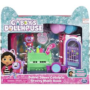 Prepare-se para o rock-out, com o DJ Catnip, na Sala de Música Da Gabby's Dollhouse Groovy! Este playset de luxo Gabby's Dollhouse está repleto de detalhes divertidos e surpresas para explorar, dando vida à sala mágica do show. Abra a caixa para encontrar uma figura colecionável DJ Catnip, duas peças de móveis e duas Dollhouse Deliveries com dois acessórios surpresa! Assim como Gabby faz no início de cada episódio, unbox sua Dollhouse Entregas especial para descobrir os acessórios misteriosos do conjunto: um microfone e uma tuba que o DJ Catnip pode realmente segurar ou usar! Configure o piano e o baque da Groovy Music Room e dobre a jukebox em um palco de karaokê legal para sua grande apresentação! Fique balançando na bateria, depois vá para o piano – os gatinhos no topo dançam quando você pressiona as teclas! É tão divertido! Com tantas características para curtir, o Groovy Music Room do DJ Catnip é um grande presente para as crianças. É perfeito para brincar de mentira e desliza direto para os slots do quarto na Gabby's Purrfect Dollhouse (vendida separadamente) para mais maneiras de jogar fora suas aventuras de casa de bonecas! Além disso, construa seu mundo de Bonecas Gabby com todos os outros Quartos Deluxe (cada um vendido separadamente). Para uma surpresa de bis, escaneie o código QR encontrado dentro de uma das Entregas dollhouse e desbloqueie uma recompensa especial no aplicativo Gabby's Dollhouse (disponível para iOS e Android). Jam junto com DJ Catnip na Sala de Música Da Gabby's Dollhouse Groovy!