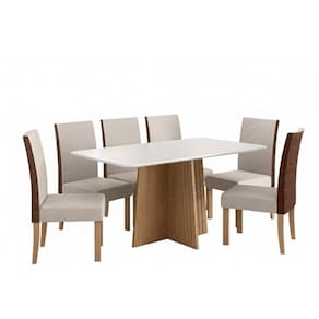 Conjunto Isa com Cadeiras Helo: moderno e elegante, com mesa de tampo em vidro OFF e base na cor mel frisada, acompanhada de cadeiras em linho bordado e courino, garantindo charme e durabilidade . Ideal para deixar sua sala de jantar sofisticada, acolhedora. Medida da Mesa (A x L x P): 82x160x90 Peso da Mesa: 51,7 kg Mesa suporta até: 100 kg Acabamento da Cadeira/Banco: Pintura UV Acabamento da Mesa: Pintura UV Ambiente Principal: Sala de Jantar Cadeira/Banco Estofada: Encosto e Assento Estofados Cadeira/Banco estofada: Encosto e Assento Estofados Cadeira/Banco suporta até: 100 kg Cadeira/Banco Suporta Até: 100.0000 codigo_ean: 7900288274168 Complexidade da Montagem: Baixa: pode ser montado por uma pessoa sozinha Cor: Mel/Off White Cor do Produto: Mel/Off White Cor Secundária: Amarelo De Canto (Canto Alemão): Não Enchimento do Assento: Espuma D-18 Escala de Brilho: Brilhante Espessura do Tampo: 18 mm Estrutura do Assento: MDF/MDP Formato do Tampo: Retangular Itens Inclusos: 1 Mesa, 6 Cadeiras, Kit Ferragens e Manual de Montagem Linha ou Coleção: Helo/Isa Manual de Especificação Técnica: https://product-hub-prd.madeiramadeira.com.br/432741020/documents/14d16992-db0a-4567-84ff-b5cef4862fbd3292338105617613279969294.pdf Manual de Montagem e Instalação: https://product-hub-prd.madeiramadeira.com.br/432741020/documents/b7f51a9c-70a3-426e-99ae-f93a5dd965973292337105617613279969294.pdf Marca: Sonetto Móveis Material da Base da Mesa: MDP Material da Estrutura da Cadeira: MDF/MDP Material do Tampo: Vidro/MDF Medida da Cadeira/Banco (A x L x P): 100cm x 46cm x 60cm Medida do Tampo (L x C x E): 160x90x1,8 Mesa Extensível: Não Necessita Montagem: Sim Origem do Produto: Nacional Peso da Cadeira/Banco: 7,925 kg Possui Apoio Para os Pés: Não Quantidade de Cadeiras: 6 Quantidade de Lugares: 06 Recomendações de Uso, Manutenção e Limpeza: Pano umedecido Revestimento da Cadeira/Banco: Courino Sistema de Montagem: Parafuso, Cavilha, Sapata, Bucha , Porca, Arruela Marca: Não Informado