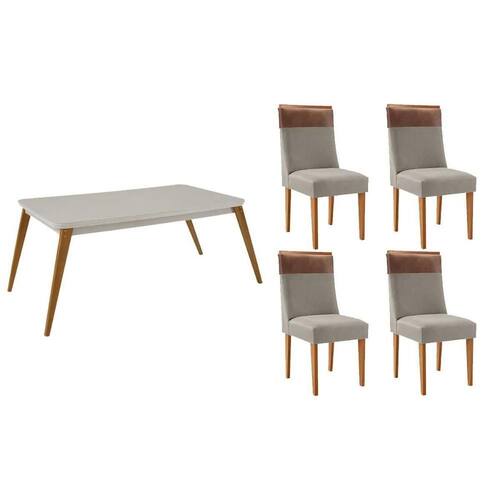 Sala Jantar Mesa Havana Tampo c/ Vidro Curvo 120cm+4 Cadeiras Jaspe Madeira Naturale/Off White - Capuccino/Suede Capuccino - Rufato