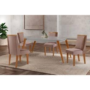 Material do produto Mesa: MDF e Vidro Temetrosperado. Cadeira: MDP, MDF e Suede.