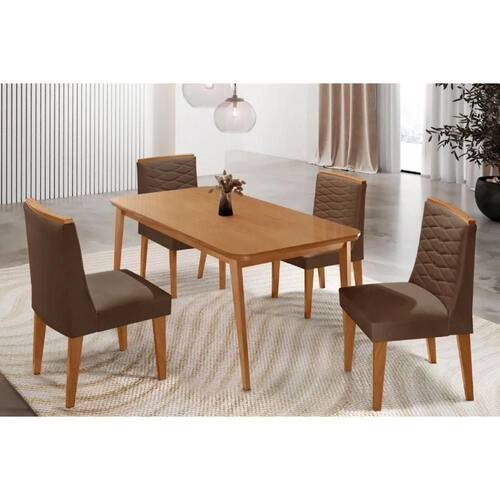 Sala Jantar Mesa Havana Tampo Curvo 120cm+4 Cadeiras Maldivas Madeira Naturale - Capuccino/Suede Marrom - Rufato