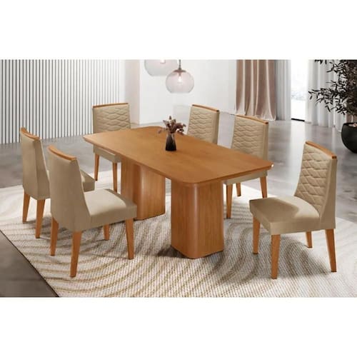 Mesa: Estrutura em MDF, Pés em MDF. Cadeira: Estrutura em madeira, Assento e Encosto Estofados.Vendido e entregue por Costa Rica Colchões