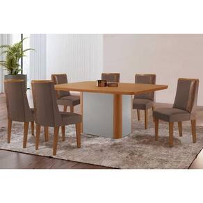Sala Jantar Mesa Pietá Tampo Curvo 180cm+6 Cadeiras Tilia Madeira Naturale/Off White - Capuccino/Suede Marrom - Rufato
