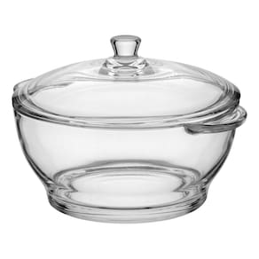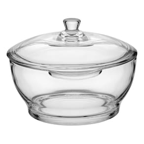 Altura: 16 cm Largura: 26 cm Profundidade: 26 cm Peso: 2,00 Kg Diâmetro da Base: 15 cm Diâmetro do Topo: 21 cm Material: Vidro Cor: Transparente