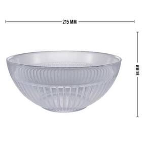 Descriçãobr / Distribuído por: casa das serrasbr / br / Características:br / - a saladeira / bowl de vidro da ruvolo é muito prática e com designer diferenciado, vidro extremamente resistente e com uma delicada aparência.br / - acima de tudo utilizada para almoços, jantares, café da manha e festas.br / - portanto a saladeira / bowl de vidro é perfeita para à mesa, garantindo uma sofisticada decoração.br / br / Descrição do produto:br / - dimensões:br / Diâmetro: 21cmbr / Altura: 9,4cmbr / - peso: 1,2kgbr / - material: vidrobr / - cor: transparentebr / - uso: ideal para saladas, frutas, cupcakes e pães.br / - garantia: 3 meses de fábricabr / - conservação: para conservar seu produto sempre utilize água e sabão neutro, não utilizar produtos abrasivos.br / br / Conteúdo da embalagem:br / 1 - bowl de vidro gourmetbr / br / Imagens meramente ilustrativas Ean: 7908011003085