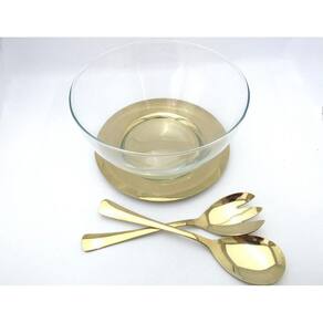 A saladeira dourada by Fineza é produzido em vidro e aço inox de alto padrão. Os seus itens produzidos em aço inox são revestidos em dourado e esse revestimento não sai e não descasca. Um item que pode agregar mais beleza e sofisticação para a sua mesa, além da funcionalidade para servir uma deliciosa salada.