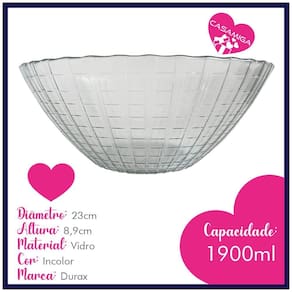 Saladeira Fruteira Bowl Vidro Transparente Firenze 1900ml