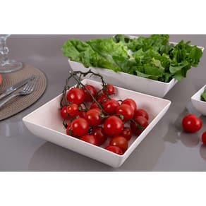 Saladeira Quadrada 1,4 Lt Travessa Petisqueira Bege Bandeja própria para servir lanches, petiscos, frutas e pode ser usada até mesmo para decoração.