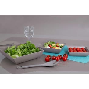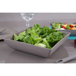 Saladeira Quadrada 2,9 Lt Travessa Petisqueira Cinza Bandeja própria para servir lanches, petiscos, frutas e pode ser usada até mesmo para decoração.