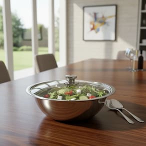 A Saladeira Travessa Bowl Inox com Tampa de Vidro Fratelli é a escolha ideal para quem busca qualidade, resistência e sofisticação na hora de servir. Com 35 cm de diâmetro, este bowl grande é perfeito para saladas, massas, frutas e diversas preparações, tornando sua mesa mais elegante e funcional.