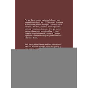 Por que durou tanto o regime de Salazar, a mais longa ditadura do século XX? É isso que o professor, pesquisador e político português Fernando Rosas, especialista na história dos fascismos, procura explicar neste livro que marca o apogeu da sua obra historiográfica. O livro, vencedor do prêmio PEN de ensaios em Portugal, supre uma lacuna na bibliografia publicada sobre Salazar no Brasil. Marca: TINTA DA CHINA SP