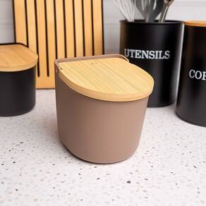Saleiro com Tampa Bambu Marrom Mesa Porta Condimentos 600ml