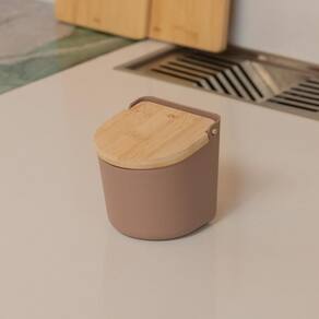 Detalhes do produto Tampa basculante que protege o sal da umidade e facilita o uso Ideal para armazenar e ter o sal sempre a mão na bancada Pote arredondado para facilitar na hora da limpeza do produto Mix de materiais em bambu e plástico fosco resistente Informações Técnicas Altura: 11 cm Largura: 10 cm Comprimento: 11 cm Peso: 0.154 kg Material: PP+BAMBU Instruções de Uso Não levar ao freezer Não levar ao micro-ondas Não levar à lava-louças O Saleiro da Linha Lume traz mais praticidade e elegância para organizar a sua cozinha. Ideal para deixar na bancada, possui tampa basculante que protege o sal da umidade e facilita o uso no dia a dia. Seu design minimalista, traz sensação de aconchego e sofisticação na cozinha, combina bambu com plástico com acabamento fosco, unindo funcionalidade e beleza na sua rotina. Cuidados Sugere-se higienizar com sabão neutro e esponja macia, evitando produtos abrasivos no processo de limpeza. Para a tampa de bambu, enxágue com água abundante, evitando deixá-lo submerso na água. Após a lavagem, seque imediatamente para evitar o aparecimento de fungos e bactérias. Guarde o produto em local seco arejado. Caso o produto apresente mofo, limpe-o com um pano umedecido Conteúdo da embalagem 1 Saleiro com tampa de bambu Ou Linha Lume