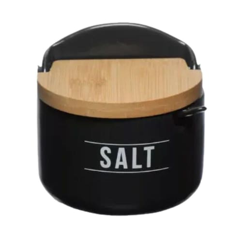 Características principais: Capacidade de 300ml: Armazene uma quantidade generosa de sal para suas necessidades diárias, evitando a constante reposição. Design sofisticado: A cor preta e o acabamento brilhante conferem ao saleiro uma aparência elegante e contemporânea, perfeito para qualquer decoração de cozinha. Tampa de bambu: A tampa feita de bambu é uma opção sustentável e durável, que mantém o sal fresco e protegido da umidade e outros elementos. Inclui colher: Além da tampa, este saleiro vem com uma colher de porcelana, permitindo que você adicione sal com facilidade e precisão aos seus pratos.