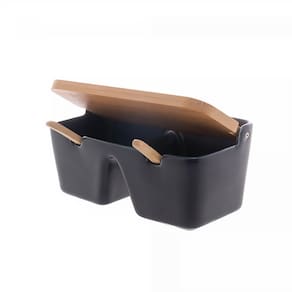 O Saleiro de Cerâmica 2 Divisórias com Tampa e Colher de Bambu Azul Escuro da Wolff é uma solução elegante e funcional para armazenar e acessar facilmente o sal e outros condimentos durante o preparo das suas refeições. Com duas divisórias, este saleiro permite que você armazene diferentes tipos de sal ou outros condimentos sem misturá-los, mantendo a organização e a praticidade em sua cozinha.