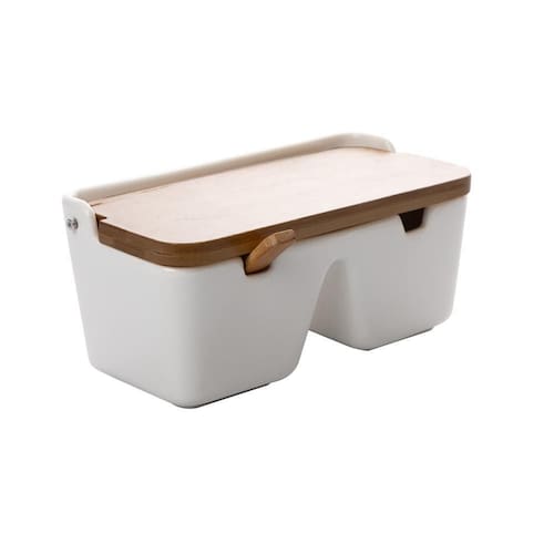 Características: 2 Divisões de Cerâmica: Permite armazenar diferentes tipos de sal de forma organizada e prática. Tampa de Bambu: Além de dar um toque natural e sofisticado ao saleiro, a tampa de bambu mantém o sal fresco e protegido da umidade. Colher de Cerâmica: Acompanha uma colher de cerâmica para facilitar o manuseio e servir a quantidade ideal de sal. Dimensões Compactas: Com medidas de 9,5cm x 19,5cm x 9cm (CxLxA), este saleiro é ideal para uso em mesas e bancadas.
